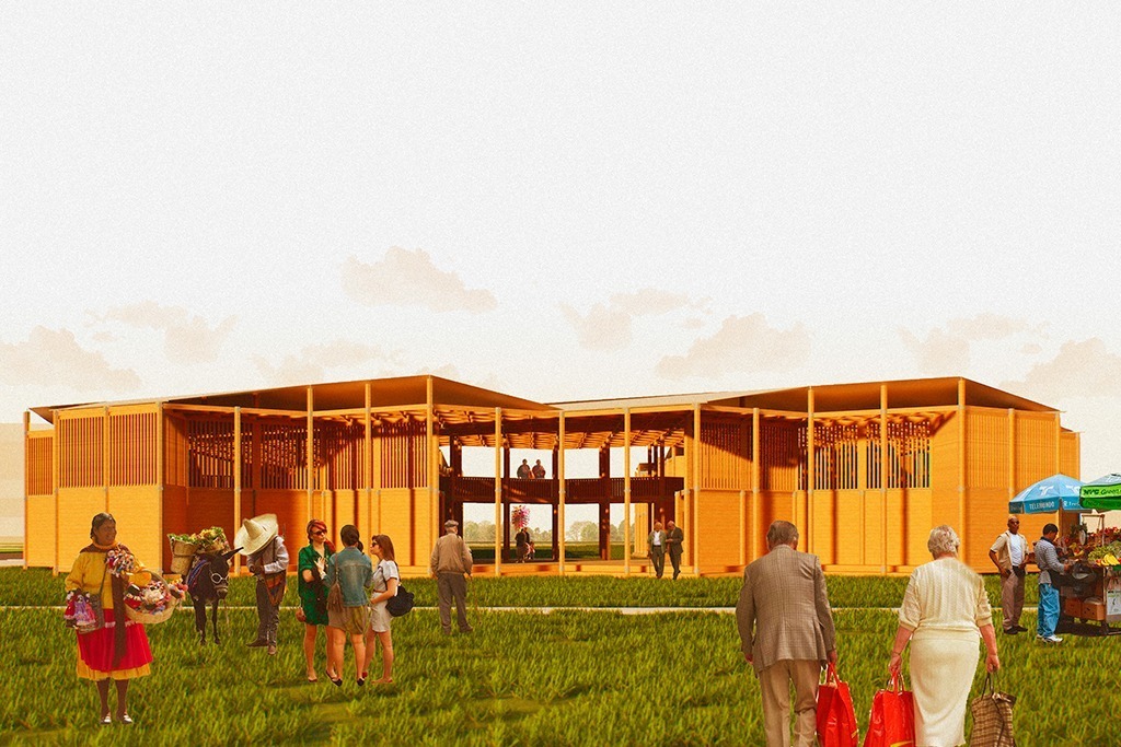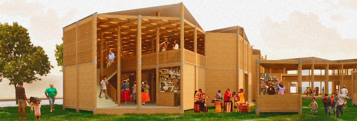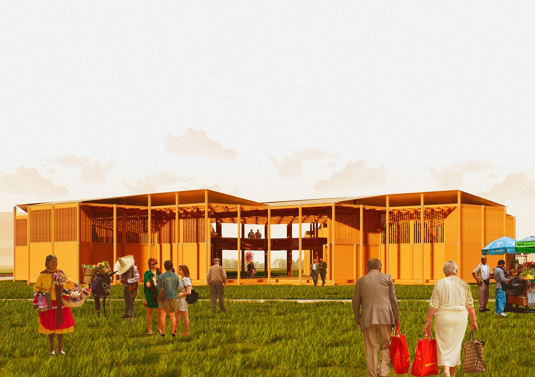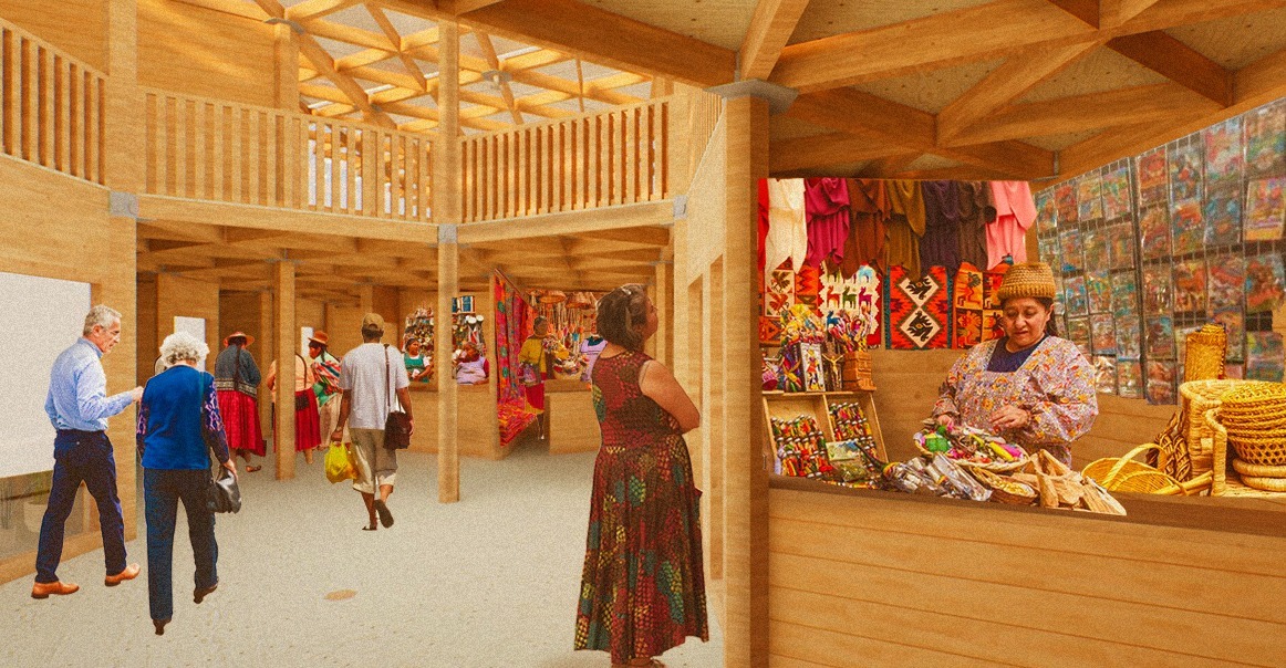 Se utiliza madera por ser un material ligero, sustentable, resistente y fácil y rápido de maniobrar. El sistema modular y prefabricado combina paneles de CLT, pilares de madera laminada y madera microlaminada en piezas estructurales más pequeñas, priorizando la ligereza que caracteriza al comercio itinerante. Además explotando las virtudes visuales de la madera, sin pinturas o recubrimientos extra, reconociendo el arraigo de este elemento en la cultura artesana. Es así un proyecto concebido entre lo tradicional y lo contemporáneo, entre la tradición y la tecnología.