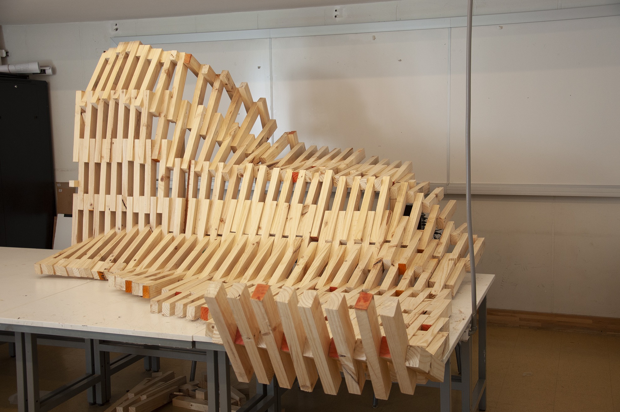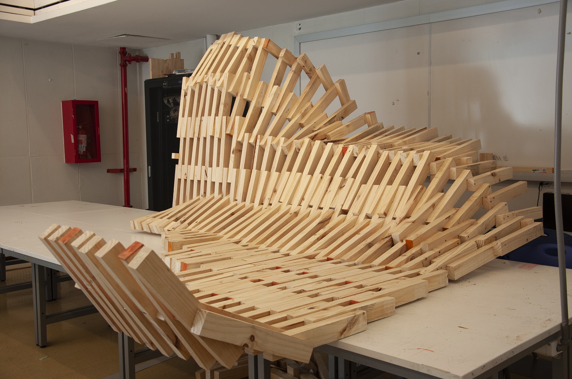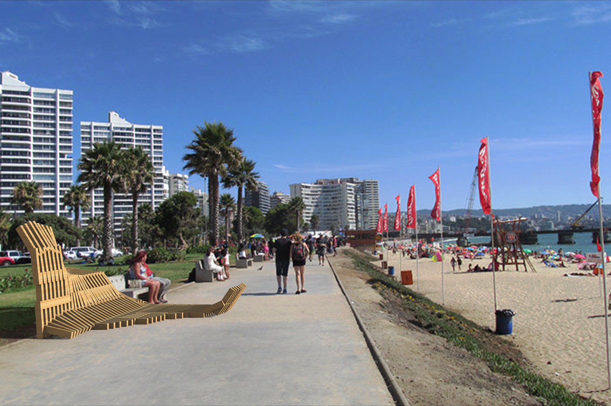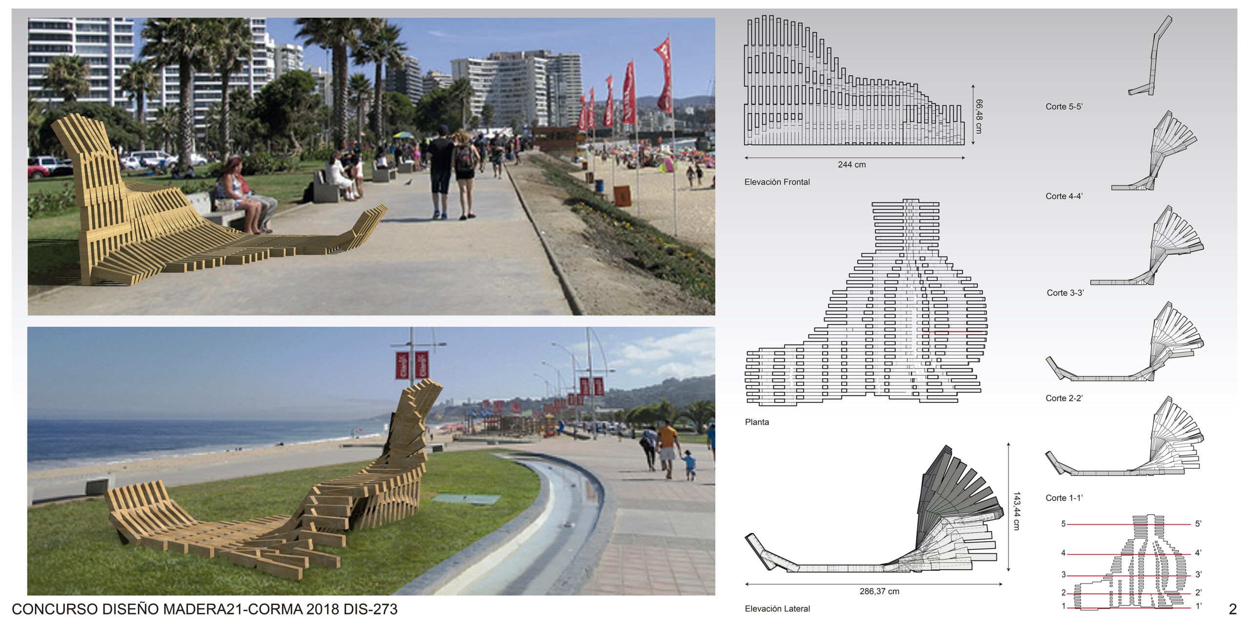 Wave Skin consiste en una estructura para poder sentarse, apoyarse o acostarse, la cual está construida con bloques de madera generando una especie de muralla de ladrillos, pero en forma horizontal, y desde esta vista lateral, genera un abanico representativo en las posiciones desde sentado hasta acostado de una persona. Este proyecto se enfoca en el uso de herramientas digitales para su creación y/o modificación, para luego pasar por un proceso parametrizado que conlleva a la utilización de un brazo robótico “KUKA” para poder lograr una colocación precisa de cada bloque y así evitar defectos o errores que puedan ocurrir con su fabricación en forma manual.
