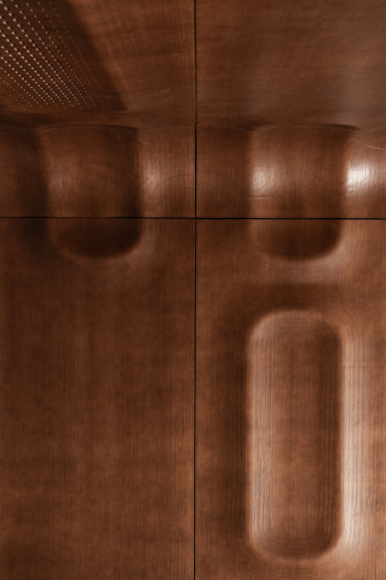 Woodflow-skin es un sistema de revestimiento interior ultra liviano y sostenible, fabricado mediante manufactura aditiva robótica a partir de chapa de madera. Inspirado en la forma en que los árboles optimizan su crecimiento, el diseño biomimético de los paneles permite una distribución precisa del material, generando piezas tridimensionales personalizadas de solo 3 mm de espesor y 3,9 kg/m² (incluyendo estructura de soporte), con alta resistencia y una estética distintiva. A diferencia de soluciones tradicionales, Woodflow-skin utiliza chapas en lugar de bloques macizos de madera, lo que permite un uso más eficiente del árbol. Este enfoque, junto con la fabricación digital, reduce significativamente la cantidad de materia prima necesaria. Adicionalmente, su sistema de fijación sin adhesivos, facilita el montaje, desmontaje y reutilización de los paneles. Su fabricación robotizada permite adaptar cada diseño a las necesidades estéticas de arquitectos y diseñadores, abriendo nuevas posibilidades para espacios comerciales, oficinas y proyectos hoteleros. Además de su eficiencia técnica, aporta la calidez y nobleza sensorial de la madera natural, elevando la experiencia espacial en contextos donde el detalle y la atmósfera son clave.