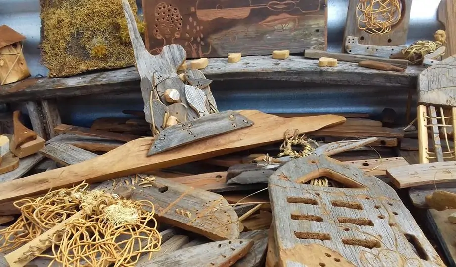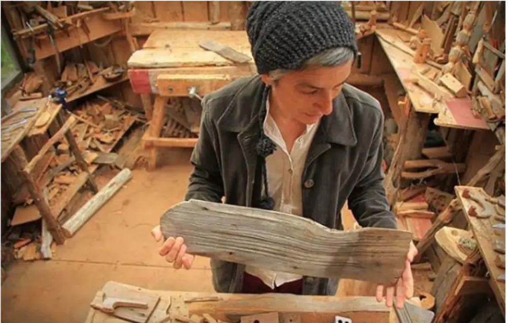 Hace 25 años, Marisol Bergmann vendió todo lo que tenía y se construyó una casa en el bosque de Chonchi. Allí, comenzó de manera autodidacta a trabajar con maderas recicladas de construcciones, con las que hoy crea diversos objetos decorativos y didácticos. Entre ellos, un producto que ahora se conoce como el “lego chilote”.