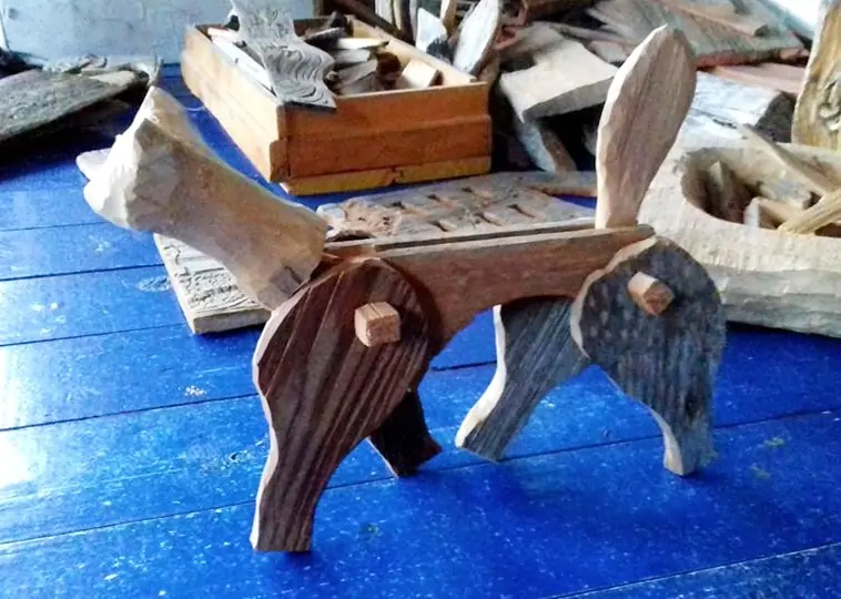 -Hago las patitas, las manitos, la cabeza y después hago la forma con distintos pedazos de madera.